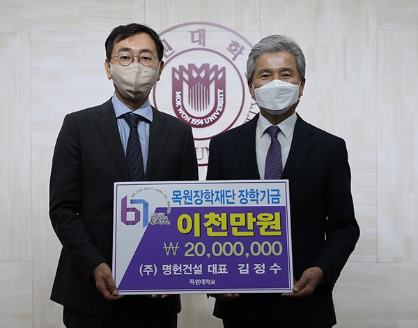 명헌건설 김정수 대표가 목원장학재단에 장학기금 2000만원을 기탁했다.