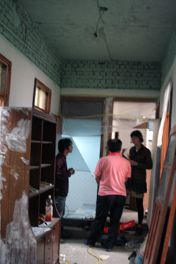 공사를 막 시작했던 두 달 전 모습을 기억하는 본 글쟁이에게 현재 산호여인숙은 전혀 다른 공간이었다. 오랫동안 사람 손길이 닿지 않아 낡고 음침한 분위기(귀신 나올 법한)마저 감돌았던 곳이 두 달여 만에 산뜻하게 변했다. 천장을 뜯어내고 페인트를 다시 칠했으며, 타일도 새로 붙였다. 이제 조금만 정리하면 여느 숙박시설 못지않게 쾌적한 곳이 될 것 같았다.