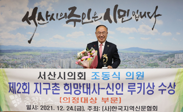 조동식 의원은 24일 (사)한국지역신문협회 주최 제2회 지구촌 신인루키상 시상에서 활발한 의정활동을 통해 서산시 및 의정 발전에 기여한 공로를 인정받아 신인 루키상 의정대상을 수상했다.