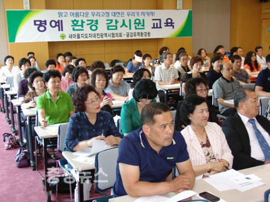새마을지도자대전광역시협의회(회장  박 우)지도자 70여명은 지난 14일 대전시청 3층 세미나실에서 금강유역환경청에서 실시하고 있는 '명예 환경 감시원' 교육을 받고 '음식물 쓰레기 줄이기'부터 시작해 생활 환경 개선 실천을 다짐했다.