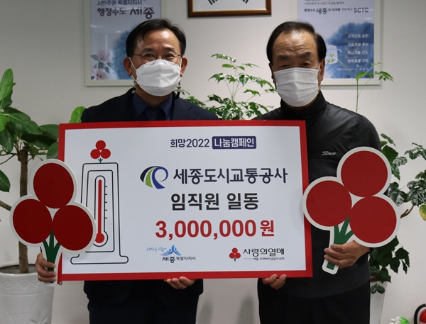 [충청뉴스 최형순 기자] 세종도시교통공사가 세종사회복지공동모금회(회장 홍영섭)에 ‘희망2022나눔캠페인’ 성금 300만원을 전달했다.