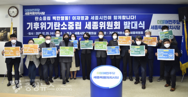 기후위기탄소중립세종위원회는 29일 더불어민주당 세종시당 대회의실에서 “탄소중립 실현을 통해 미래세대에게 온전한 지구환경을 물려주기 위한 세종시민과 함께하는 ‘탄소중립 백만행동’을 함께 실천해 나가겠다”는 의지로 출범식을 진행했다.
