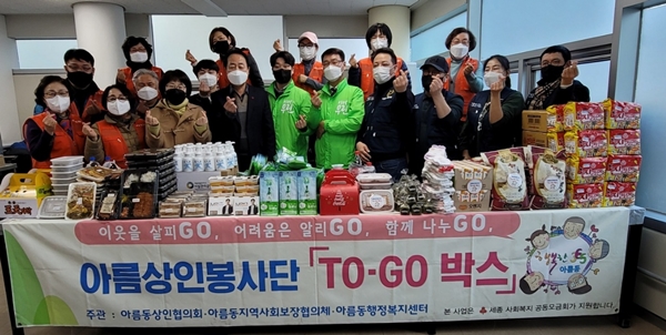 한편 ‘TO-GO’박스는 매월 어려운 이웃에게 다양한 지원물품을 제공하는 행사로 아름동 지역사회보장협의체, 아름동상인협의회에서 주관하는 지원사업이다.