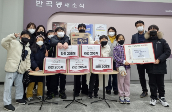 [충청뉴스 최형순 기자] 세종특별자치시 반곡동(동장 유희영)은 최근 솔빛초 학생회와 경희대금강태권도 원생들이 취약계층을 위해 라면을 기부했다.