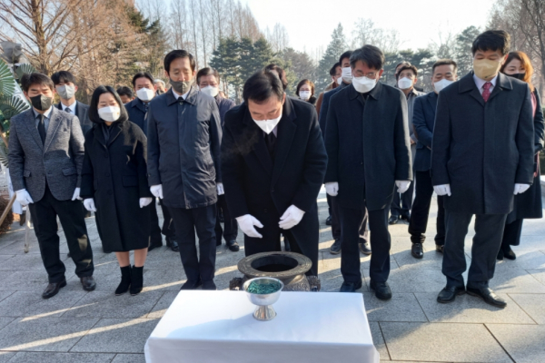이날 신년참배는 최민호 시당위원장을 비롯한 주요 당직자 및 박용희 세종시의회 의원, 성선제 세종 미래포럼 이사장, 정원희 정원희 세종도농융합연구원장, 제20대 대통령선거 세종시당 선거대책위원들이 참석했다.
