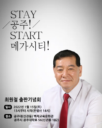 [충청뉴스 공주 = 조홍기 기자] 6.1지방선거 공주시장 출마예정자인 최원철 前 정진석 국회부의장 보좌관이 15일 출판기념회를 갖고 본격적인 행보에 나설 것으로 보인다.