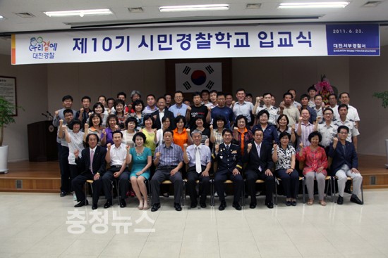대전서부경찰서(서장 윤소식)는 지난 23일 지역주민 44명으로 구성된 제10기 시민경찰학교 입교식을 갖고 7월 14일까지 교육에 들어갔다.