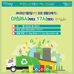 이와 함께 시는 올해부터 생활쓰레기 수거 시간이 야간에서 주간으로 변경된 것과 쓰레기 올바른 배출 방법도 홍보해 시민 혼란을 줄이고 깨끗한 주거환경 만들기에 앞장설 계획이다.