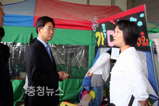 ▲ 양승조 의원이 유성기업 관계자와 이야기를 나누고 있다.