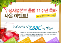 충청지방우정청은 우정사업본부가 출범 11주년을 맞아 27일부터 내달 15일까지 ‘우체국쇼핑으로 COOL 한 여름나기! 사은 이벤트’를 펼친다고 밝혔다.