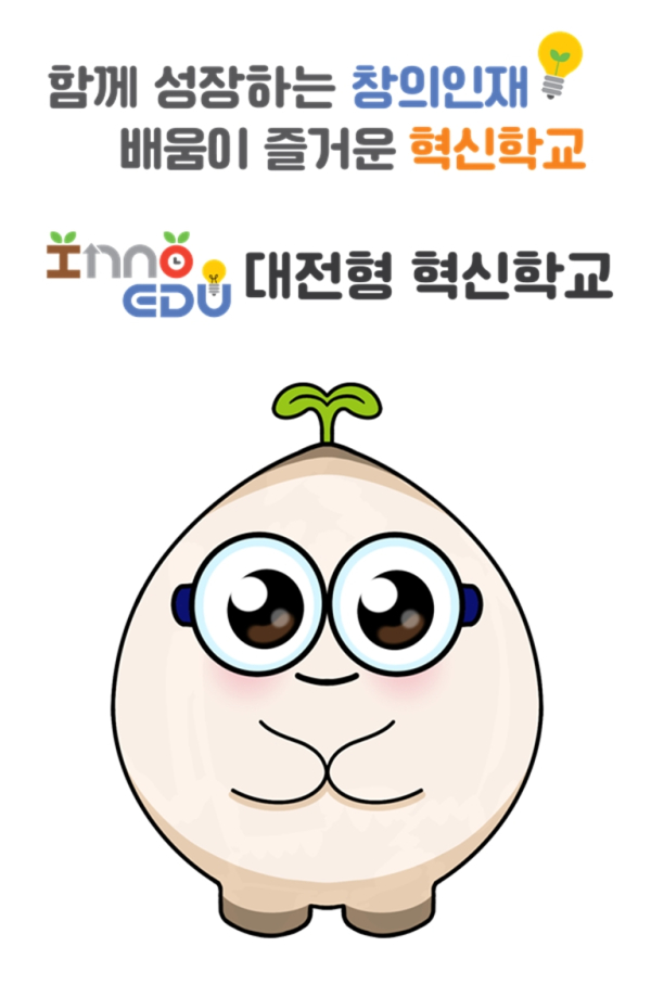 또 슬로건은 ‘함께 성장하는 창의인재, 배움이 즐거운 혁신학교’로 교육공동체가 대전 혁신교육 안에서 함께 성장해 가고 있음을 의미한다. 마지막으로 ‘쑥쑥이’라는 이름의 캐릭터는 창의인재씨앗학교의 ‘씨앗’을 상징하며 대전형 혁신학교의 이미지를 친근하게 표현하고 성장 잠재력과 무한한 가능성을 나타냈다. 대전형 혁신학교 상징은 대전형 혁신학교 누리집에 탑재돼 있어 누구나 자유롭게 활용할 수 있다.