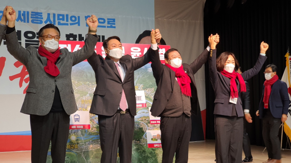 이날 필승결의대회는 정진석 국회 부의장, 송아영 세종,강원 선대위원장, 최민호 세종시 총괄 위원장, 성선제, 김복렬 세종시 선대 위원장, 안상현 17세 청소년 당원(두루중) 등이 참석 했다.