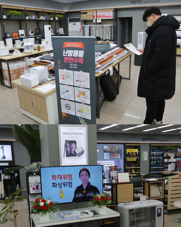 주요 내용으로는 △난방용품 판매부스에 안전수칙 배너 설치 △고객 대상 안전수칙 전단지 배부 △매장 내 영상매체를 활용한 안전사용 영상 송출 등을 실시해, 난방용품 판매부스를 화재예방 분위기 조성을 위한 공간으로 활용하는 것이다.