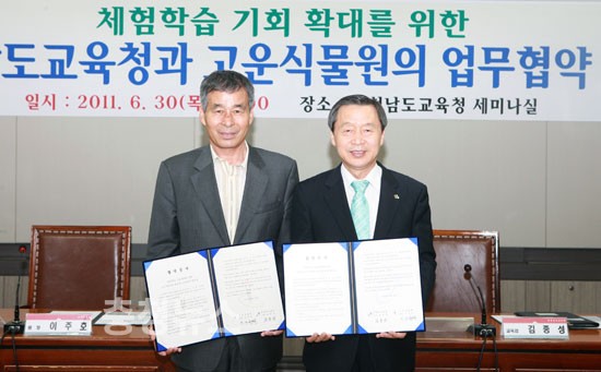 충남교육청(교육감 김종성)은 30일 본청 세미나실에서 청양에 있는 고운식물원과 학생들의 체험학습 기회 확대를 위한 업무협약을 체결했다.