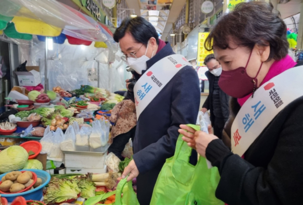 박 위원장은 시장 골목을 돌며 설 명절 제수용품과 다양한 먹거리 등을 구입하면서 시장 거래 동향과 장보러 나온 시민들의 민심을 청취했다.
