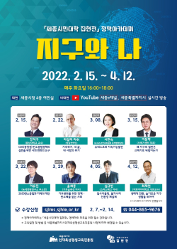 [충청뉴스 최형순 기자] 세종시는 오는 15일부터 4월 12일까지 매주 화요일 오후 4시마다 ‘지구와 나’를 주제로 정책아카데미 강의를 연다.