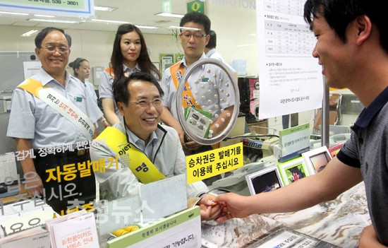 판암역 명예역장이 된 한현택 동구청장은 승차권 발매, 이용객 안내, 편의시설 점검 등 도시철도 서비스 체험 및 친절도우미 역할을 하며 이용객의 의견을 청취했다.