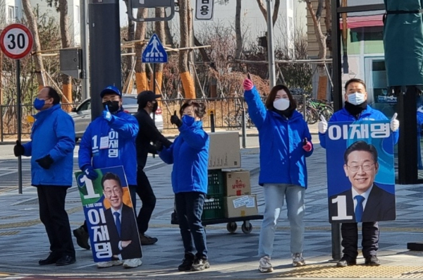 18일 세종(갑) 대전환 선대위는 다정동상가 일원에서 조상호 전 세종시경제부시장과 당원들이, 세종(을) 나침판 유세단은 고운초사거리에서 손현옥 세종시의원과 당원들이 이재명 후보에 대한 지지를 호소했다.