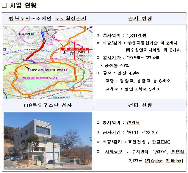 행복도시~조치원 도로건설현장 및 119특수구조단 청사 현장