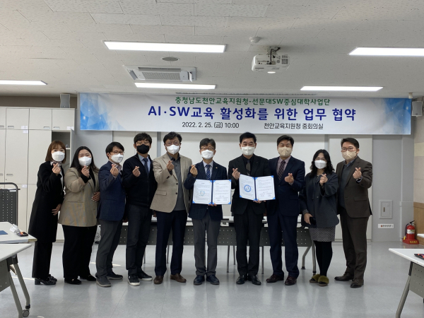 [충청뉴스 박동혁 기자] 충청남도천안교육지원청은 25일 천안교육지원청 중회의실에서 인공지능·소프트웨어교육 활성화를 위해 선문대학교 SW중심대학과 업무 협약을 체결했다.