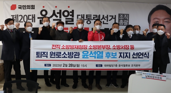 이 자리에서 전직 소방방재청장, 소방본부장 및 소방서장 등 원로 소방지휘관들은 제20대 대통령 선거에서 윤석열 후보를 지지하는 선언식을 거행했다.