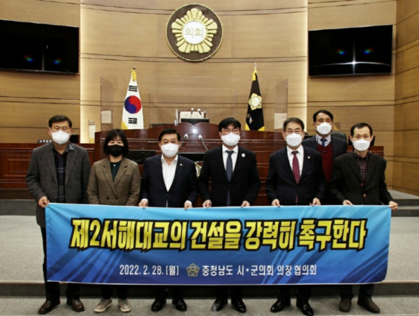 충남시·군의회의장협의회에서는 제2서해대교 건설 건의문을 채택하고 충청권 개발에 핵심 교통축이 될 제2서해대교의 필요성을 체감하고 있다며 적극 협력할 것을 약속했다.