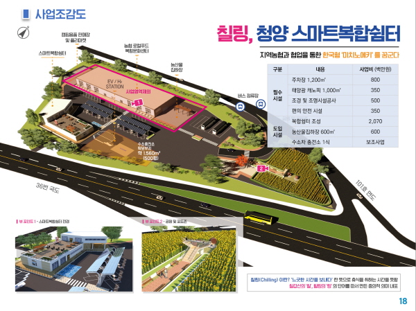 복합쉼터 건립 예정지는 화성농협이 농식품부와 청양군의 보조를 받아 로컬푸드 복합문화센터(한국형 미치노에키)를 설치하는 곳으로 하나로마트와 로컬푸드 직매장, 음식점, 까페 등이 들어서고 있다. 이곳과 스마트 복합쉼터가 결합하면 청양지역 최초의 신개념 휴게․쇼핑․관광 공간이 탄생할 것으로 기대된다.