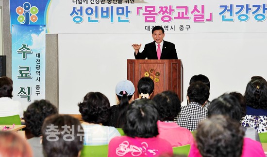 대전 중구(구청장 박용갑)는 13일 운동과 영양상담을 통해 스스로 성인비만을 관리할 수 있는 역량을 강화시키기 위해 운영한 ‘성인비만 몸짱교실’을 마치고 보건지소에서 수료식을 개최했다.