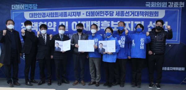 4일 대한안경사협회세종시지부 일동은 더불어민주당 세종시을 선거사무소(시당위원장 강준현)에 방문하여 ‘국민의 안보건 향상을 위한 정책협약식’을 포함한 이재명 후보 지지선언 행사를 진행했다.