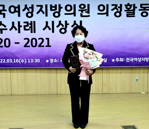 [충청뉴스 최형순 기자] 더불어민주당 최연숙 충남 당진시의원이 16일 국회의사당 내 의원회관에서 개최한 '2022 전국여성지방의원 의정활동 우수사례 공모전'에서 최우수상을 수상했다.