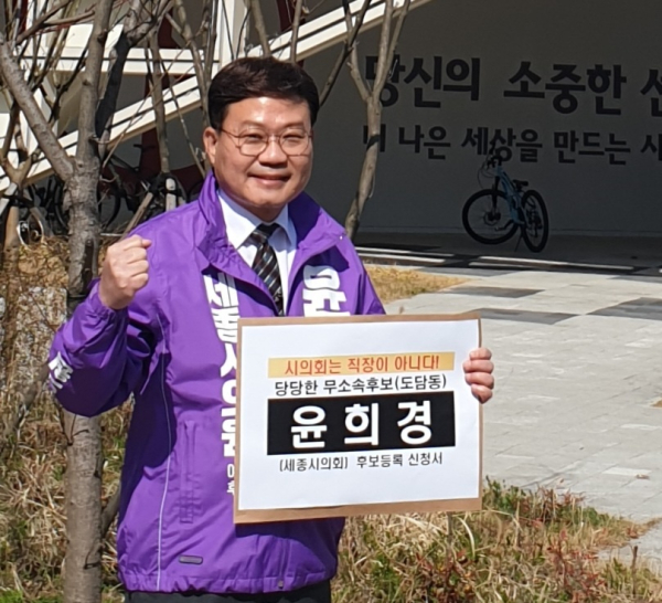 윤 전 회장은 이날 도담동에 개소한 후보사무실에서 기자회견을 통해 "시의원은 주민의 겸손한 심부름꾼"이라며 초기 지방의회의 모습인 "시의원은 겸직이 가능한 선출직으로 정당에 공천 눈치없이 본연의 직업이 있는 무보수 봉사직이 되어야 한다“며 출마의 변을 시작하였다.