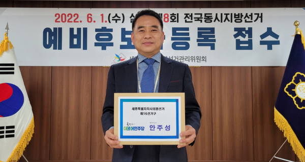 민주당 안주성, 세종시의원 예비후보 등록 완료