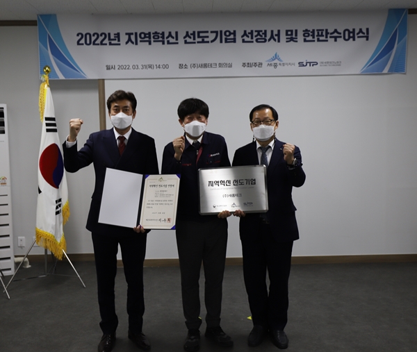 [충청뉴스 최형순 기자] 세종테크노파크가 지역산업을 이끌어갈 지역혁신 선도기업 2곳의 현판수여식을 개최했다.
