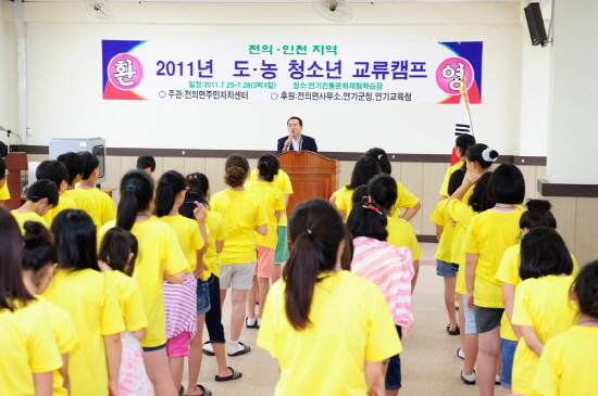 연기군(군수 유한식)은 전의지역 학생과 인천 순복음교회(인천시 남구 관교동 소재) 학생 60명을 대상으로 25일부터 28일까지 3박4일간 ‘2011년 도농 청소년 교류캠프’를 개최했다.