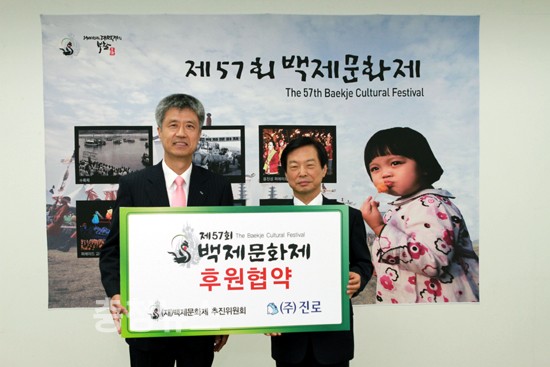 그동안 ㈜진로는 2007년 제53회 백제문화제에 2억여원, 2008년 제54회 백제문화제에 5억여원, 2010년 세계대백제전에 10억여원을 각각 후원해 행사를 지원한바 있다.