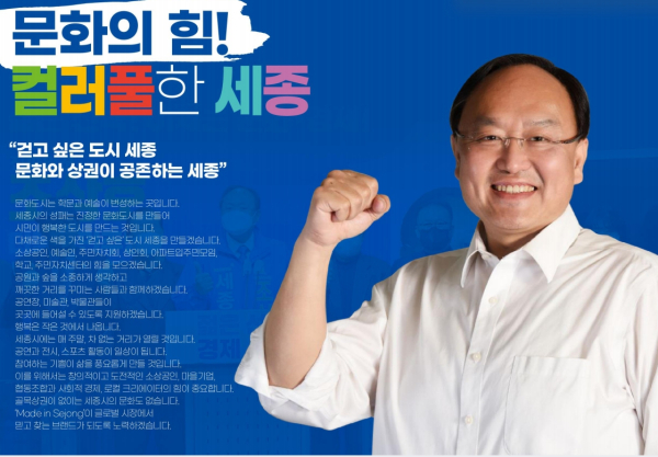 [충청뉴스 최형순 기자] 조상호 세종특별자치시장 예비후보(이하 예비후보)는 5일(화) ‘문화의 힘! 컬러풀한 세종’을 슬로건으로 문화도시 조성과 상권 활성화 공약을 발표했다.