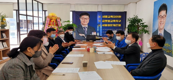 [충청뉴스 최형순 기자] 세종시 교육감 예비후보인 김대유(59세) 전 경기대 교육대학원 초빙교수(교육학박사)는 6일(수) 오전 10시 나성동 세종마루에서 ‘세종시 공동캠퍼스 재구조화 정책간담회’를 가졌다. 이 자리에는 세종시민인 이세영 변호사가 참여하여 의견을 나누었다.