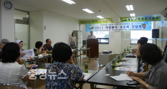 예산군(군수 최승우)은 지난 27일 사회복지기관 20여개 처에서 참석한 가운데 교육실에서 ‘2011 자원봉사 수요처 간담회’를 가졌다.