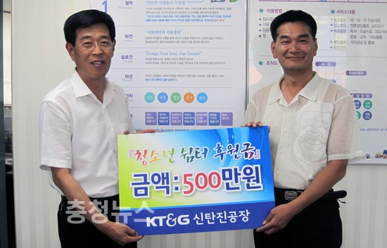 KT&G(대표이사 민영진)는 28일 대전광역시청소년여자쉼터(소장 오재진)를 방문해 직원들이 푼푼이 모은 사랑의 후원금 500만원을 전달해 지역사회의 훈훈한 정을 나눴다.