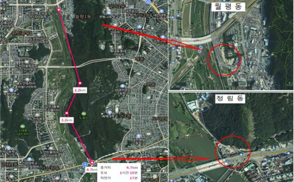 국민의힘 김경석 서구청장 예비후보가 공약한 월평동-정림동 간 천변도시고속화도로 연장구간.