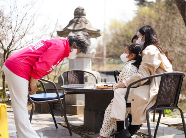 거리인사에 나선 강미애 세종시 교육감 예비후보