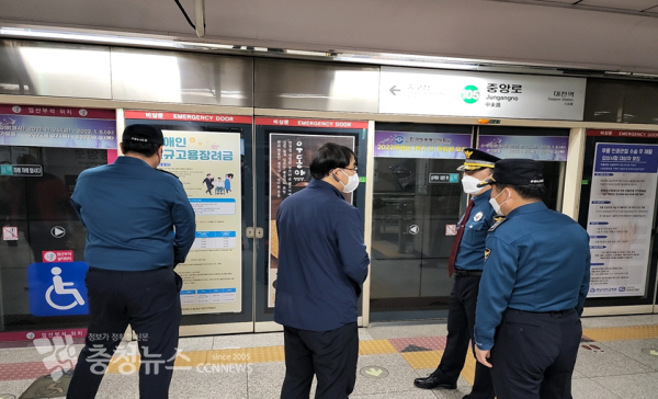 [충청뉴스 김윤아 기자] 대전중부경찰서(총경 김선영)는 11일 다중이용시설인 중앙로역과 오룡역을 방문해 대테러 예방 관련 시설 점검을 실시했다.