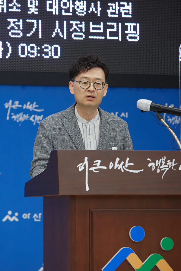 시정브리핑하는 전병관 아산시 복지문화체육국장
