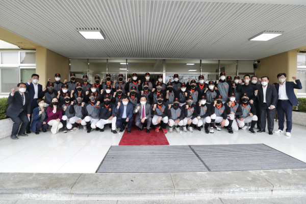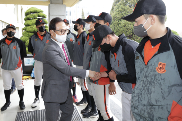 박상돈 천안시장, '10년 만의 우승' 북일고 야구부 격려 나서