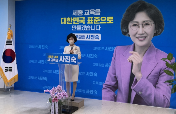 새로운 세종 ! 새 교육감 ! 사진숙 세종시 교육감 예비후보는 13일 선거 사무소 브리핑 룸에서 ‘세종의 대학입시, 진로, 학력’ 네 번째 정책발표를 진행했다.