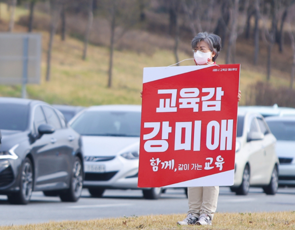 거리인사 하는 강미애 세종시 교육감 예비후보