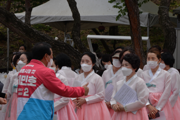 〔포토〕영평사 합찬단원들과 소통하는 최민호 세종시장 예비후보