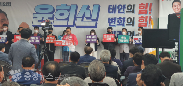 [충청뉴스 김정식 기자] 국민의힘 윤희신 충남도의원 예비후보가 지난 24일 선거사무소 개소식을 갖고 오는 6월 1일 지방선거에 공식 출마선언을 했다.