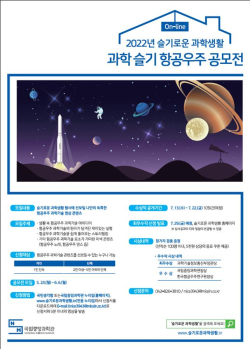 [충청뉴스 이성현 기자] 국립주앙과학관이 2022년 슬기로운 과학생활에서 선보일 ’과학 슬기 항공우주 공모전‘ 참가자를 다음달 23일부터 모집한다.