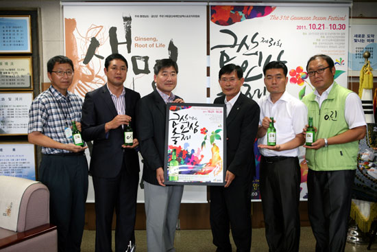 금산군(군수 박동철)은 산소소주 O₂린을 생산하고 있는 향토기업 (주)선양과 제31회 금산인삼축제의 성공적인 개최를 위해 손을 잡았다고 밝혔다.